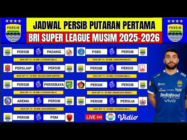 Musim ini,Jadwal Lengkap Persib Bandung di BRI Super League 2025/2026Â Persib harus bertarung di 18 pekan plus laga tunda dengan tim-tim promosi baru yang bisa jadi jebakan. Tapi kalau Maung Bandung lagi on fire, siapa pun bisa dibuat keder.